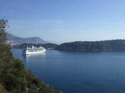 青い海に、ヨットや大型豪華客船が浮かぶ景観は、ラグジュアリー。それもそのはず、対岸のサン・ジャン・カップ・フェラ(Saint-Jean-Cap-Ferrat)