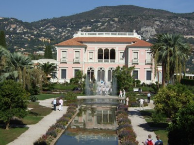この邸宅、もともとは、ロスチャイルド男爵夫人(Baronne de Rothschild 1864-1934)によって20世紀初頭に建てられました。彼女の好んだイタリアンスタイルのバラ色の館は、1934年、夫人亡き後、アカデミー・デ・ボーザールに寄付され、今では、一般に公開されています。夏には、Les Azurialesといわれるオペラが開催され、フランスのみならず、ヨーロッパ中からの多くの人々でにぎわうそう。