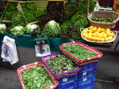 次は八百屋さん。近頃パリジャンは、前菜はサラダ派が多いよう。ベビーリーフなど