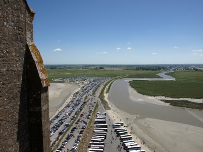この道路の建設には、反対意見もありまいしたが、迅速な修復工事と安全な巡礼や観光に大いに寄与します。 (それまでは、モン・サン・ミッシェルへは、干潮時に干潟を歩いて渡り訪ねることしか出来なかった不便さと、満潮時の潮流に足をさらわれ溺死するなどの危険を伴っていました)