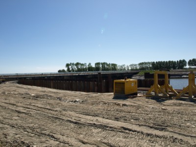 <工事中のクエノン川河口堰> |