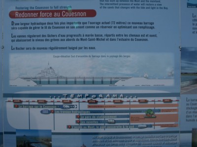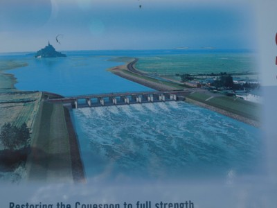 こうした世論にも啓発もされフランス政府は、国家プロジェクトとしてモン・サン・ミッシェルとその湾域の環境改善対策について検討をはじめ具体的施策として、モン・サン・ミッシェル湾に向かって流入するクエノン川に河口堰を設け湾域に堆積する砂の除去工事を手始めとする環境改善事業の着手を表明します。