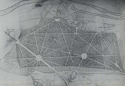 <パリ改造計画以前のブーローニュの森(1850年以前):Chadwick 1966 p.140>