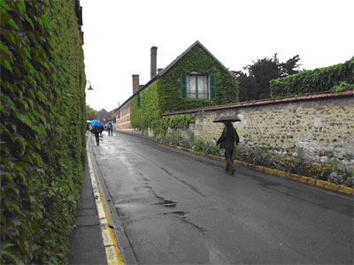 < モネが“睡蓮の庭”を描いた定点 >(右の小道の脇) |