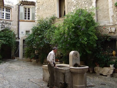 街の城壁や展望広場からは、南仏特有のパノラマを楽しむことができます。南側は、ゆるやかに下る緑の谷間から地中海が顔をだし、北側は、南仏特有の白茶けた岩肌の山間から雪を頂いたヨーロッパアルプスを望むことができます。この街がピトレスクな(絵のように美しい)のは、外から街を眺めるだけでなく、街の内側からの眺望もさすのでしょう。