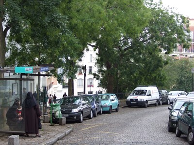 モンマルトルは標高130メートルの丘ですから、坂道や階段が多く道幅が狭い上石畳 も多いので、散歩もなかなか疲れます。最近はこの丘までモンマルトルバスが運行し、シスター方の足になっているよう。