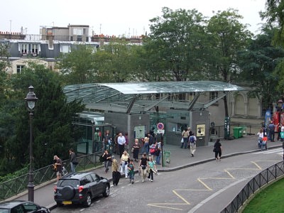 サクレ・クール寺院までのアクセスは南正面からフニクレールという ケーブルカーか階段を上るのが一般的。写真はこのフニクレールの駅。