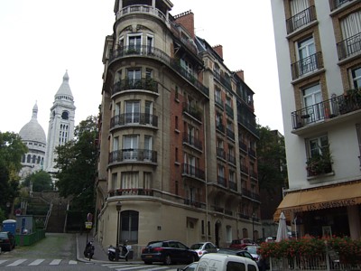 いきなりですが、丘は背後から登りましょう。メトロ・ラマルク・コランクールの駅もしくは、バスでサン・ラザールを通り、コランクール通り辺りで下車します。