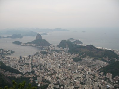 そしてグアナバラ湾に突き出した半島に、にょっきり飛び出た奇岩、ポン・デ・アスーカルが見えます。