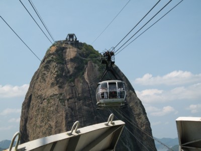 ポン・デ・アスーカルの展望台のある頂上にはロープウェイを2つ乗り継いで向かいます。