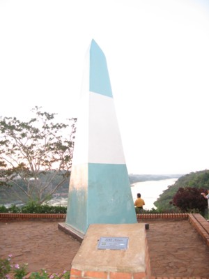 アルゼンチン側の国境の町、プエルト・イグアスには三角錐のモニュメントが建っています。
