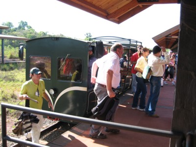20分ぐらいトロッコ列車に揺られ、「悪魔ののどぶえ」と呼ばれるイグアスの滝の最奥部に向かう歩道の入り口に着きました。