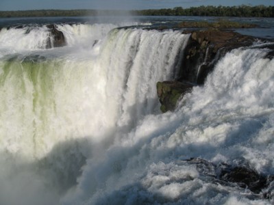 これはブラジル側の展望台から滝の中央部分を撮ったもので、アルゼンチン側からは遊歩道を通って滝の最奥部、写真の右上方に近づくことが出来ます。