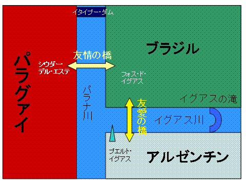 イグアスの滝と3カ国の関係を簡単な図にすると以下のように。