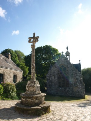 村の中心地からドゥアルヌネ湾(Douarnenez)にむけて住宅地を抜ける坂道を下ると、ひっそりとたたずむノートルダム福音礼拝堂にたどり着きます。 礼拝堂内には、百合の香りがほのかにただよい、蝋燭のともし火が人々を暖かくつつみこむ、心うたれる祈りの場所に出会います。