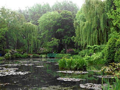 池にかかる緑の太鼓橋は、安藤広重の「亀戸天神境内」(1856年)の浮世絵に描かれている風景をモネが再構成して築いた太鼓橋です。