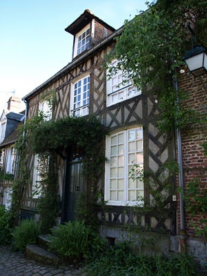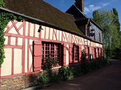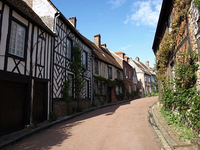 ジェルブロワは、ようやく車が行き違うことが出来る石畳の狭い道に、ノルマンディ建築様式のコロンバージュ(Colombages)と呼ばれる木組みの家々の家並みから始まります。そして車でものの5分も走れば通り抜けてしまいます、村への入口と出口に用意された来訪者用の小さな駐車場に車を止め、一時間ほど散策すれば一巡り出来てしまうほどの小さな村です。